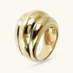 Anello a fascia Etrusca Gioielli realizzato in lega Golden, placcata oro giallo 18kt, dal particolare design triplo con superficie martellata.