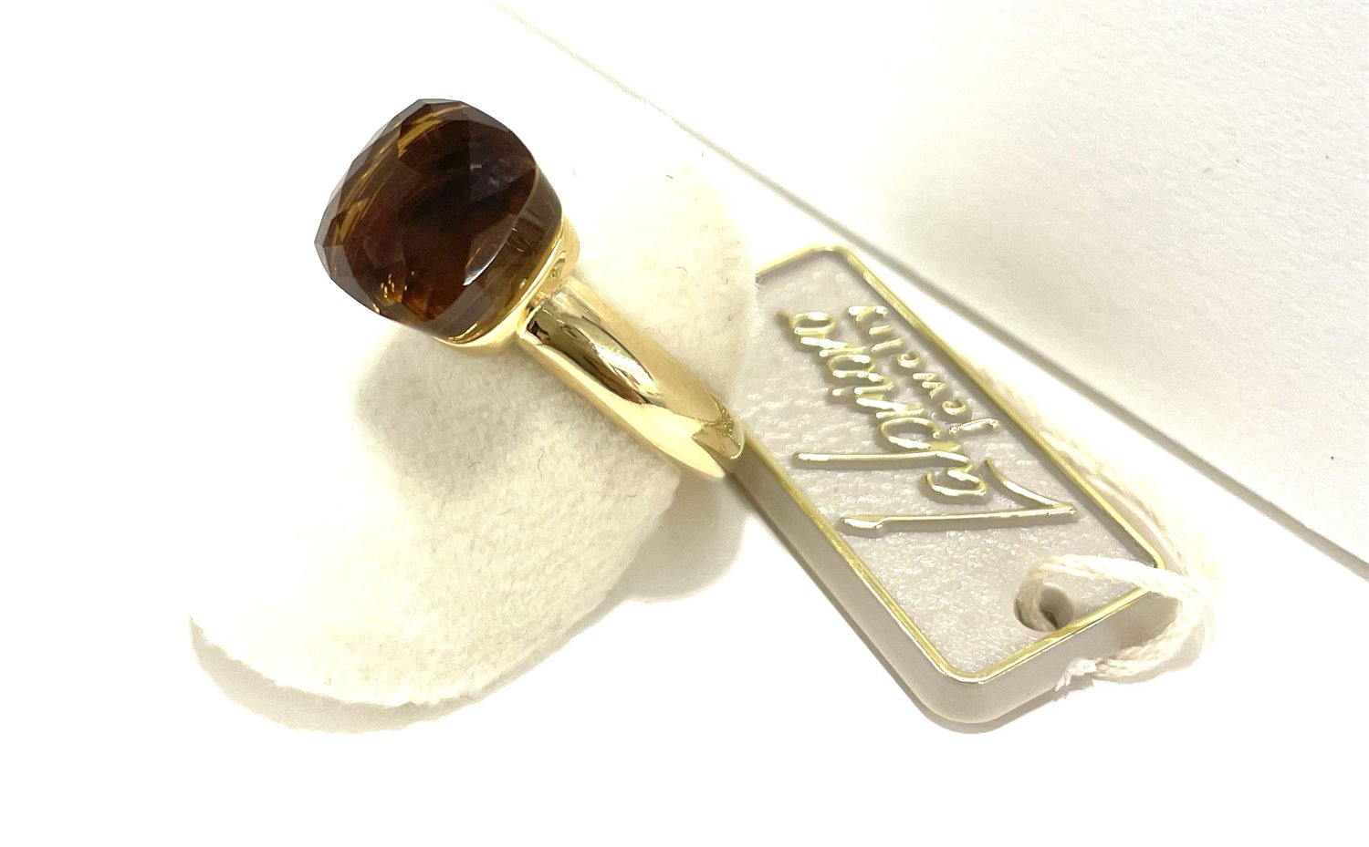 Anello in argento placcato in oro giallo con quarzo fumè.