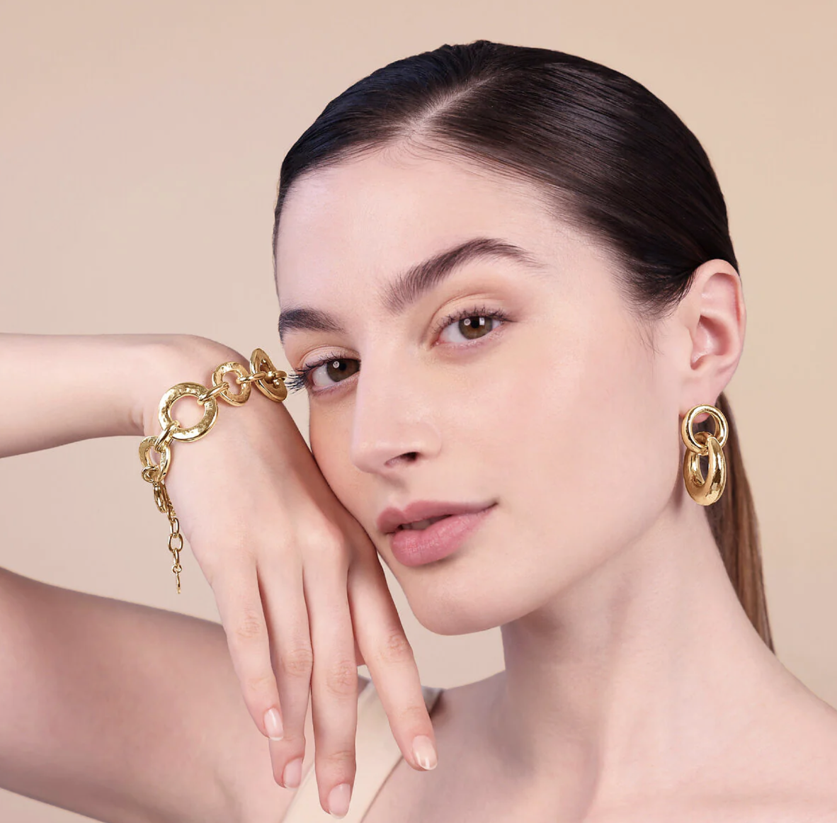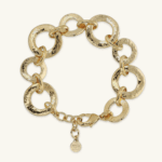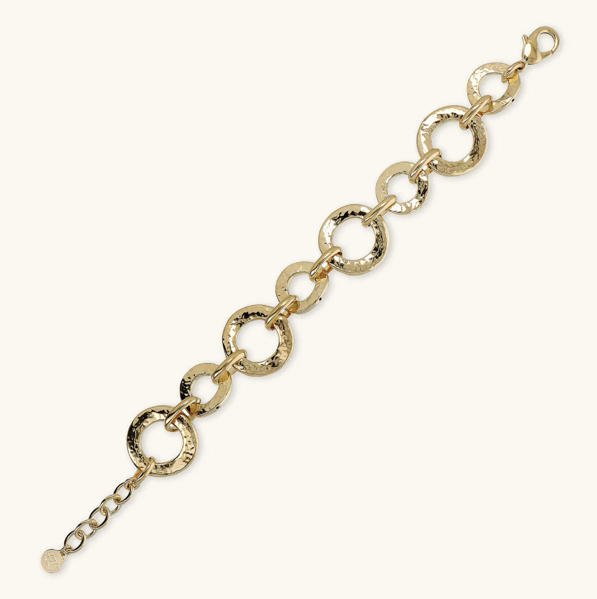 Bracciale Etrusca Gioielli realizzato in lega Golden, placcata oro giallo 18kt, con maglie ad anelli graduati e superficie martellata; chiusura a moschettone.