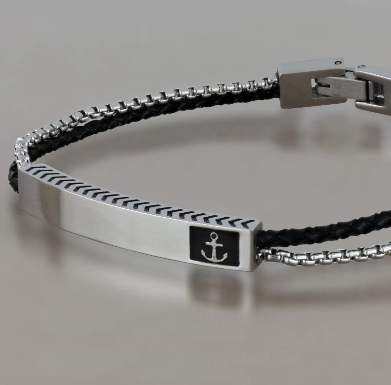 Finn rappresenta il bracciale innovativo abbinando la resistenza dell’acciaio al cordino nautico, iconico e durevole.