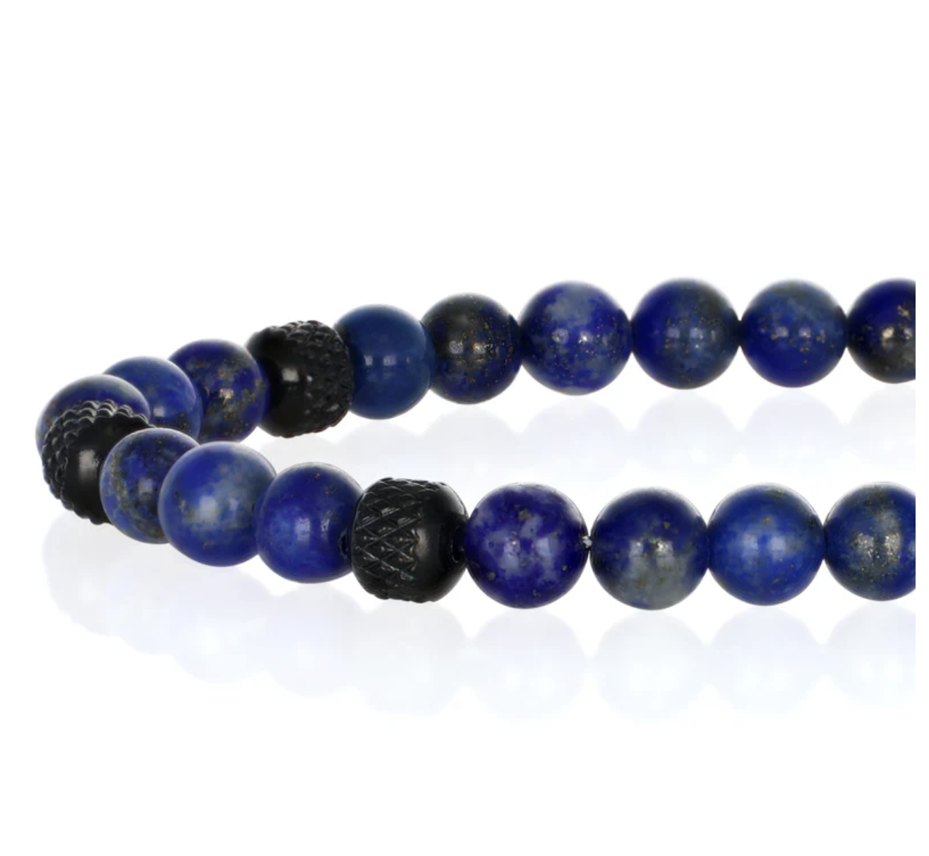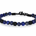 Scopri il Bracciale lapislazzuli e elementi neri Orios un gioiello maschile che combina il fascino delle pietre naturali con un design sofisticato. La profondità del lapislazzuli, accostata agli elementi neri, conferisce a questo bracciale lapislazzuli e elementi neri uno stile deciso e originale. Perfetto per l’uomo che cerca un accessorio di carattere, adatto a ogni occasione.