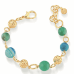 Bracciale in acciaio placcato in oro giallo con pietre naturali.