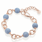 Bracciale in acciaio placcato in oro rosa con agata celeste.