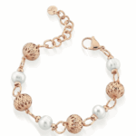 Bracciale in acciaio placcato in oro rosa con perle naturali.