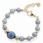 Bracciale in acciaio placcato in oro giallo con perle e lapis blu.