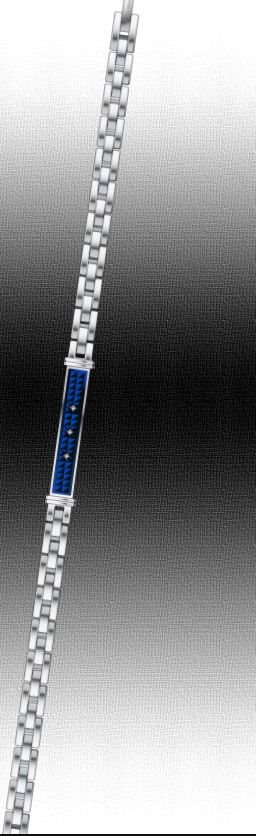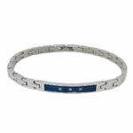 Bracciale da Uomo Zancan in acciaio con zirconi e dettagli in PVD blu, della collezione Hiteck cm 21 con possibilita’ di togliere degli elementi. larghezza lavorazione bracciale mm 7 .nella parte sotto la piastrine possibilita’ di personalizzazione