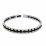 Bracciale da Uomo Zancan in acciaio anallergico, della collezione Hiteck. Bracciale in acciao silver e PVD nero. Lunghezza del bracciale 22.00 cm, con chiusura a scatto.