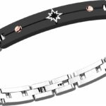 Bracciale in acciaio bicolore con spinello nero.