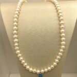 Collana di perle in oro bianco 18 Kt con Topazio Swiss Azzurro. Diametro perla 6-6,5.