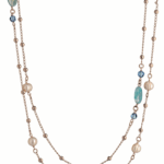 Collana in acciaio placcata in oro rosa con pietre colorate.