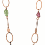 Collana in acciaio placcata in oro rosa con pietre colorate.