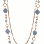 Collana in acciaio placcata in oro rosa con agate celesti.