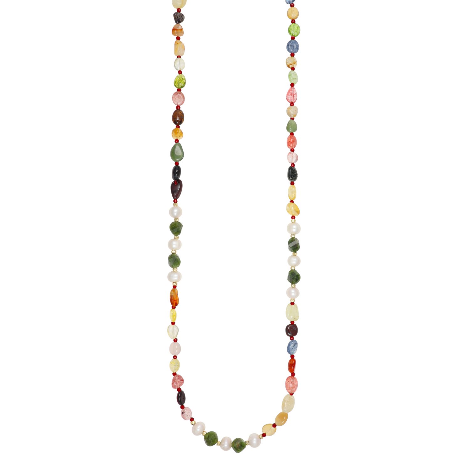 COLLANA IN ARGENTO 925, GIADA VERDE, PIETRA DURA, VETRO E PERLE DI FIUME