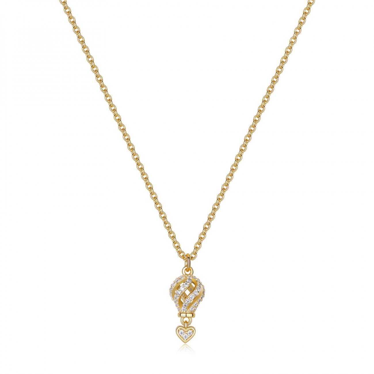 Collana corta in argento 925‰ con pendente a forma di mongolfiera, placcatura oro giallo, 60 cubic zirconia bianchi