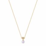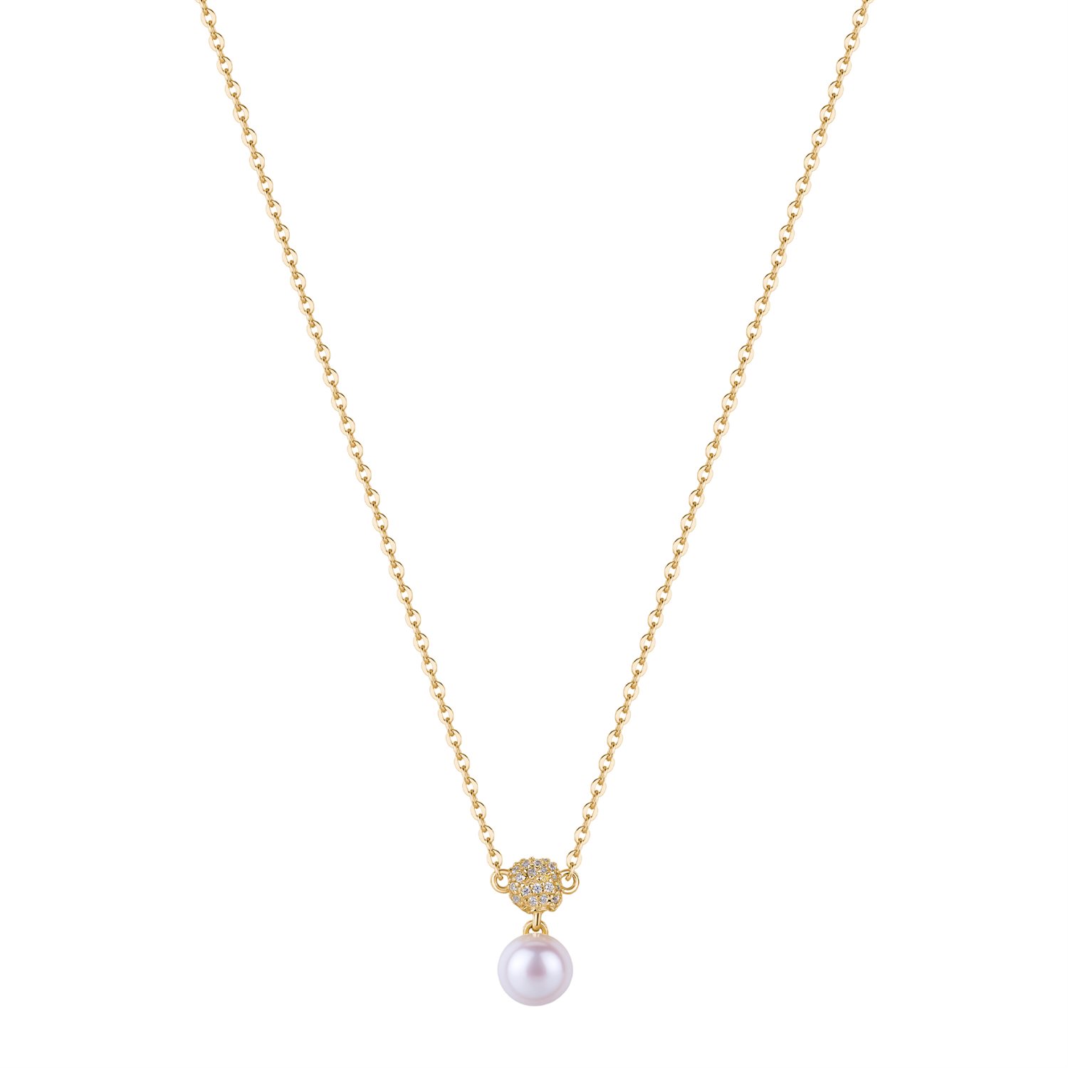 Collana corta in argento 925‰, placcatura oro giallo, 21 cubic zirconia bianchi, 1 perla naturale