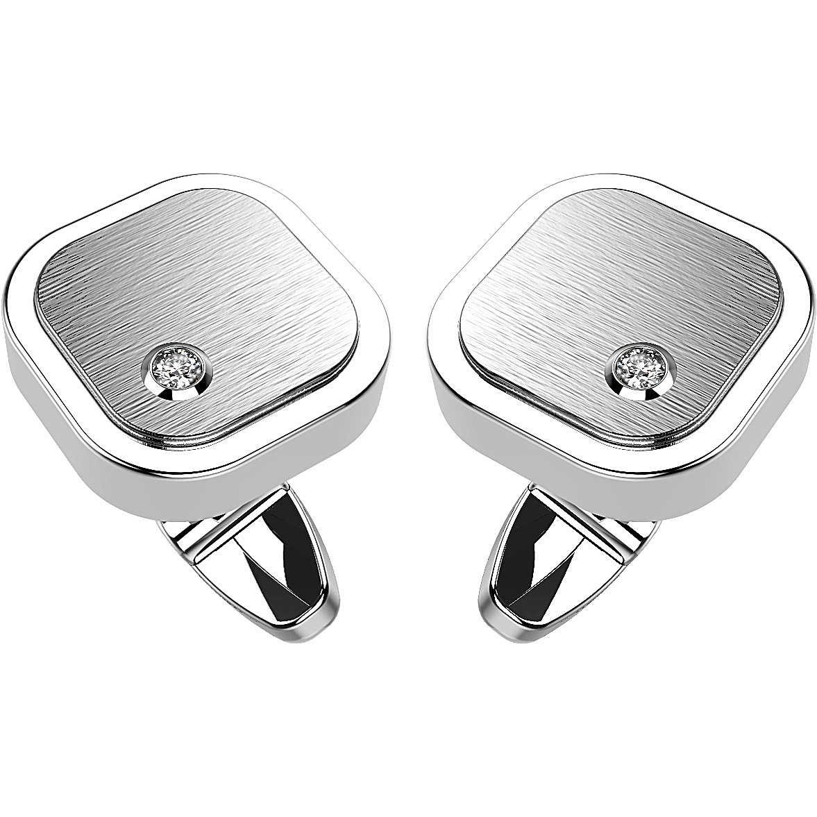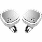 Gemelli acciaio quadrati,con piastra satinata e zaffiri bianchi,chiusura americana.