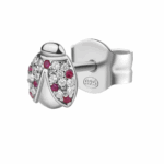 Orecchino singolo a lobo a forma di coccinella in argento 925‰, 7 cubic zirconia rossi e 16 cubic zirconia bianchi