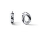 Orecchini argentati a cerchio con tubo lavorato torchon. Chiusura a baionetta, diametro 2,00 cm. Collezione Classica.