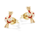 Il rosso richiama la fragola, il bianco il latte, il dorato il miele: questa coppia di gioielli Nanan a forma di caramella è un’esplosione di dolcezza, colori e ricordi.