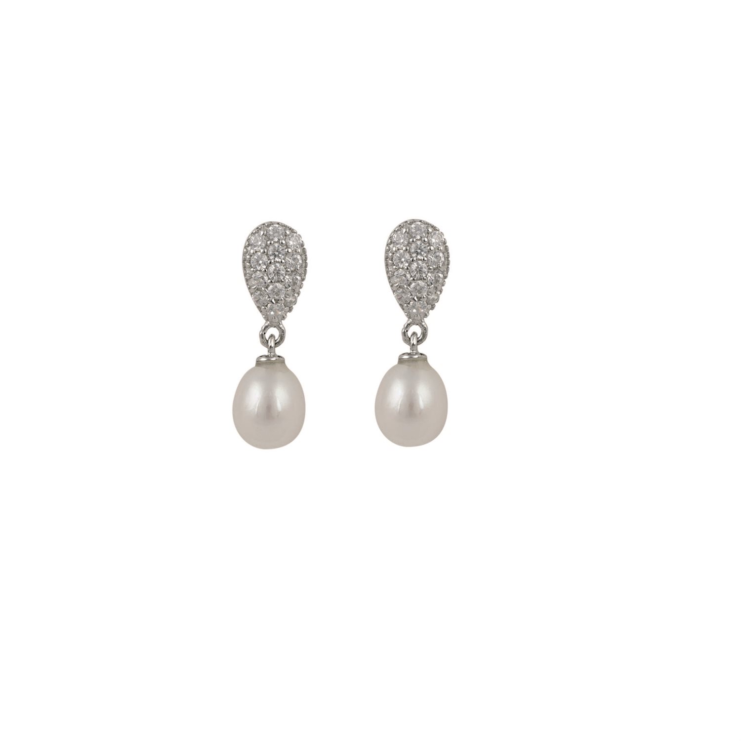 Orecchini in argento con zirconi bianchi e perla naturale.