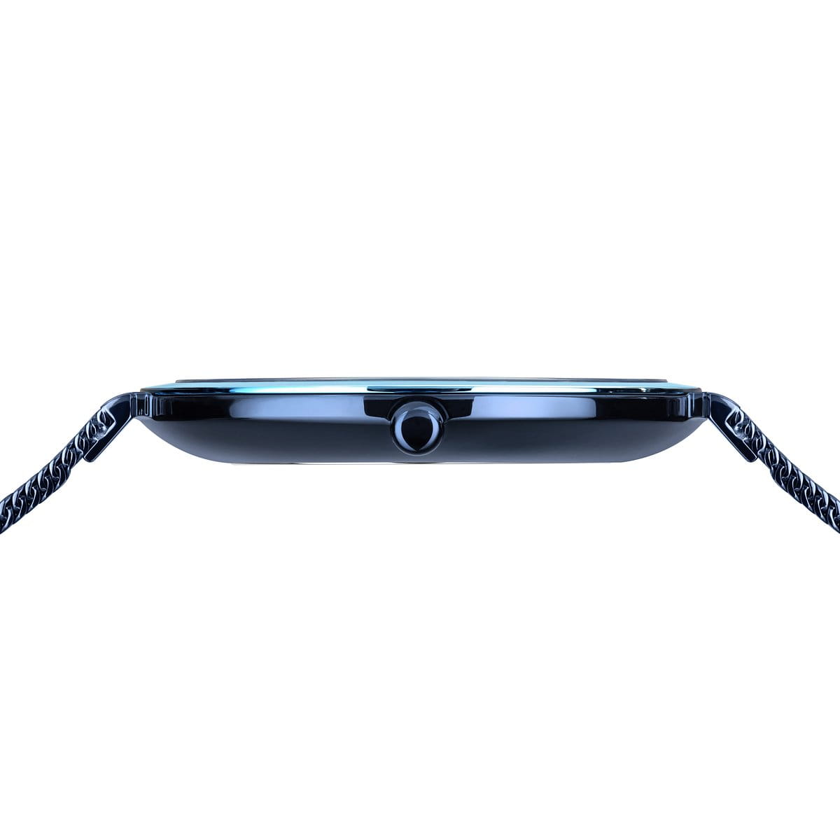 Cinturino a maglia milano in acciaio blu. Impermeabilità fino a 3 ATM.