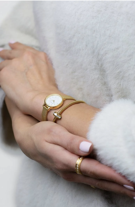 Tua madre merita qualcosa di speciale, così abbiamo creato un eccezionale set regalo per la festa della mamma. Il set contiene un delicato orologio color oro con vetro zaffiro antigraffio e un bracciale a serpente abbinato in acciaio inossidabile di alta qualità. I due pezzi si abbinano perfettamente per un look elegante e raffinato. Questo set farà sempre sapere a tua madre quanto ti senti profondamente legato a lei.