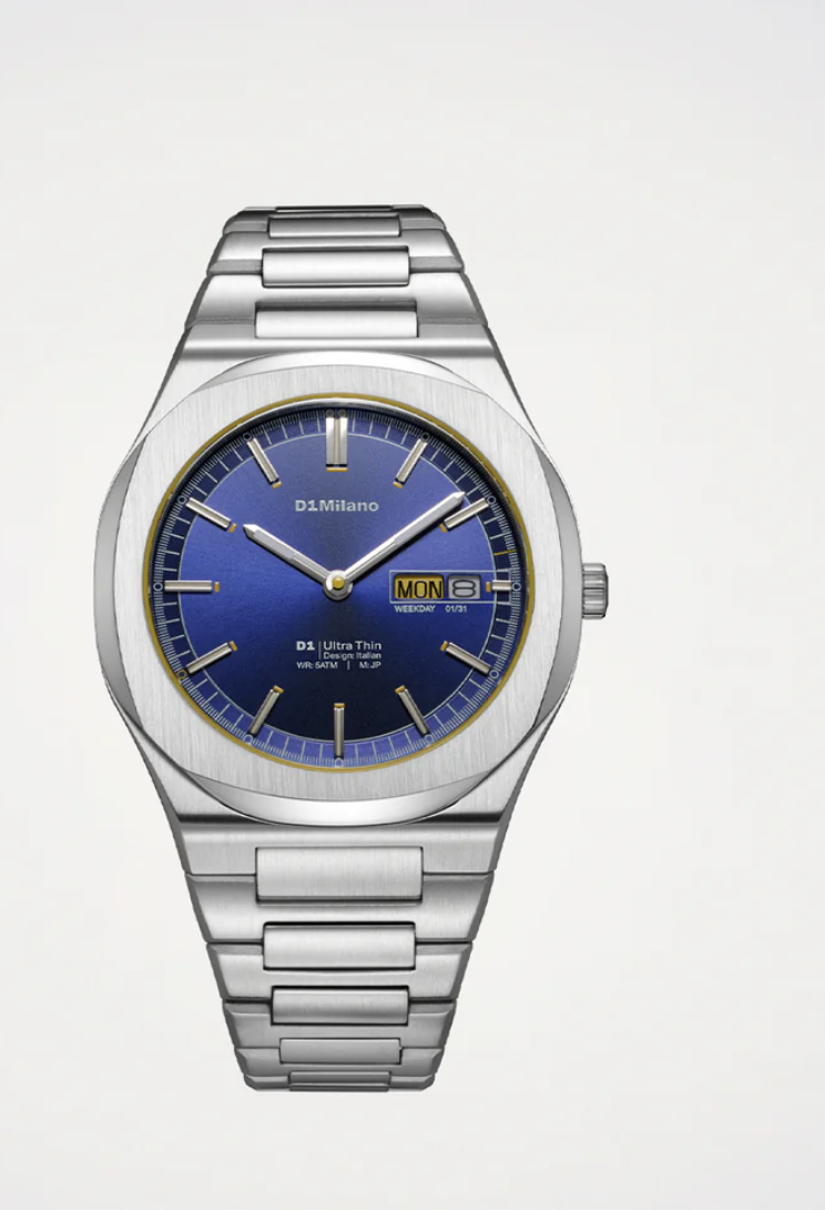 La cassa in acciaio inox da 42 mm, con finiture alternate lucide e satinate, dona profondità e carattere. Il quadrante nero effetto Sunray cattura la luce con sottili riflessi, mentre gli indici e le lancette argentate garantiscono un’ottima leggibilità. Una discreta finestrella della data alle ore 3 si integra perfettamente nel design.