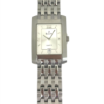 Orologio da donna con cinturino in acciaio e quadrante rettangolare.