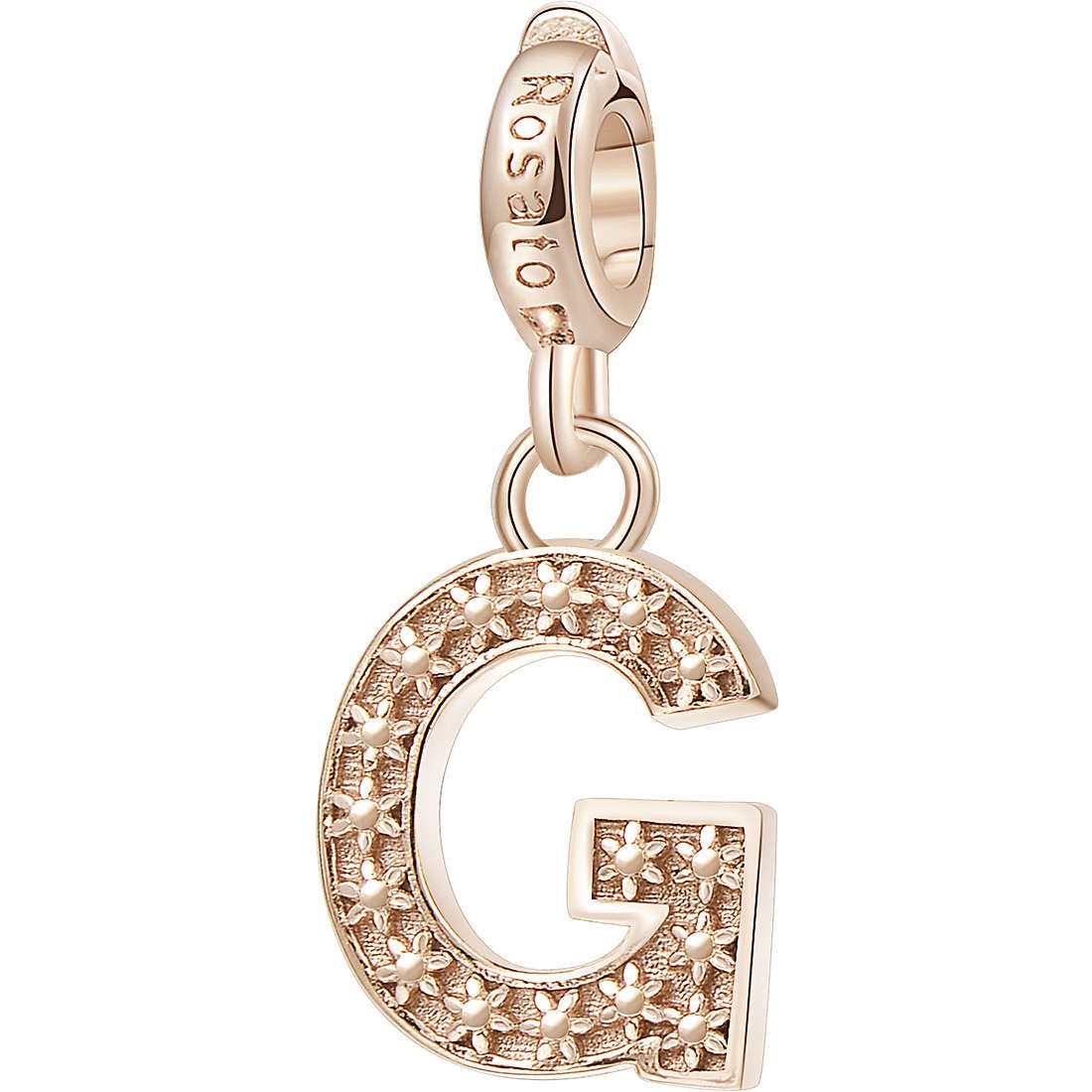 Charm Da Donna Di Rosato Della Collezione Storie. Gioiello In Argento 925‰ Galvanica Oro Rosa. Soggetto: Lettera G. Dimensioni:17 Mm. La Referenza È Rz085