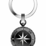 portachiavi in acciaio con trattamento in pvd nero’ applicazione rosa dei venti misura lunghezza totale cm 6 larghezza cm 2,5